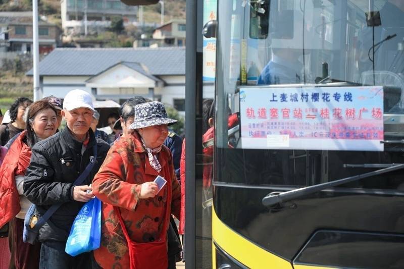 一辆辆“上麦城村樱花专线”公交车,从轨道口到樱花园,以一路畅通,串联起市民出行的便捷与春日赏樱的美好。