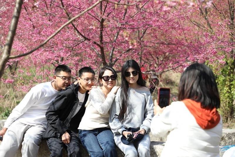 “这片樱花园最初是村里药材种植的‘伴侣作物’,如今已成为村里的‘文旅名片’。目前这片樱园正值最佳观赏期,花期将持续三周以上,市民游客可免费入园赏樱。”据上麦城村党支部书记罗志刚介绍,为了让游客拥有更好的赏樱体验,村里提前打理樱园、优化赏樱步道,同时有100余名志愿者在现场开展服务,他们分散在樱花园各处,负责维护环境卫生、交通巡逻、引导游客,全力做好服务保障,让每一位访客都能感受近郊乡村的春日暖意。