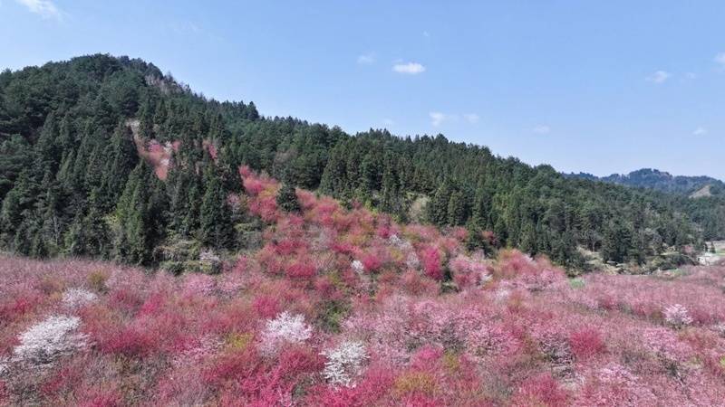 百花湖镇上麦城村千亩樱花园。